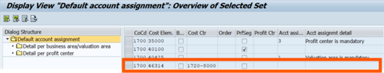 In this process step, you define the automatic additional account assignments for postings to primary cost elements. When a posting is made to a cost-accounting-relevant line item without an explicitly entered CO account assignment (such as a cost center, internal order, or profitability segment), the system determines the assignment automatically during external accounting postings. This situation commonly arises when the system generates the line item automatically rather than through a manual FI posting.