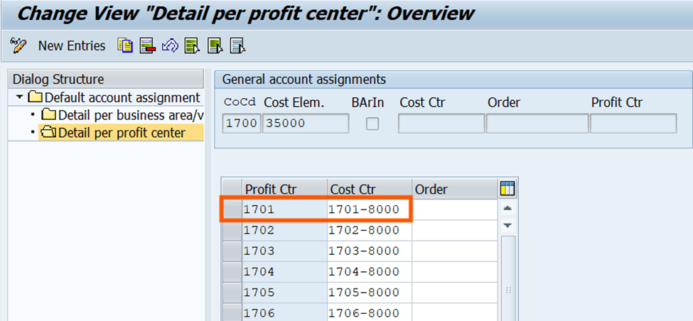 To view the details of the relationship based on which CO object is derived, select the relevant entry (cost element 35000 in this case) and double click on “Detail per profit center.”