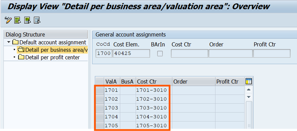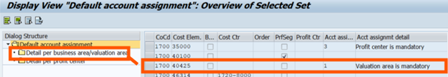 Default cost center/order for expense G/Ls; valuation-area-based defaults |